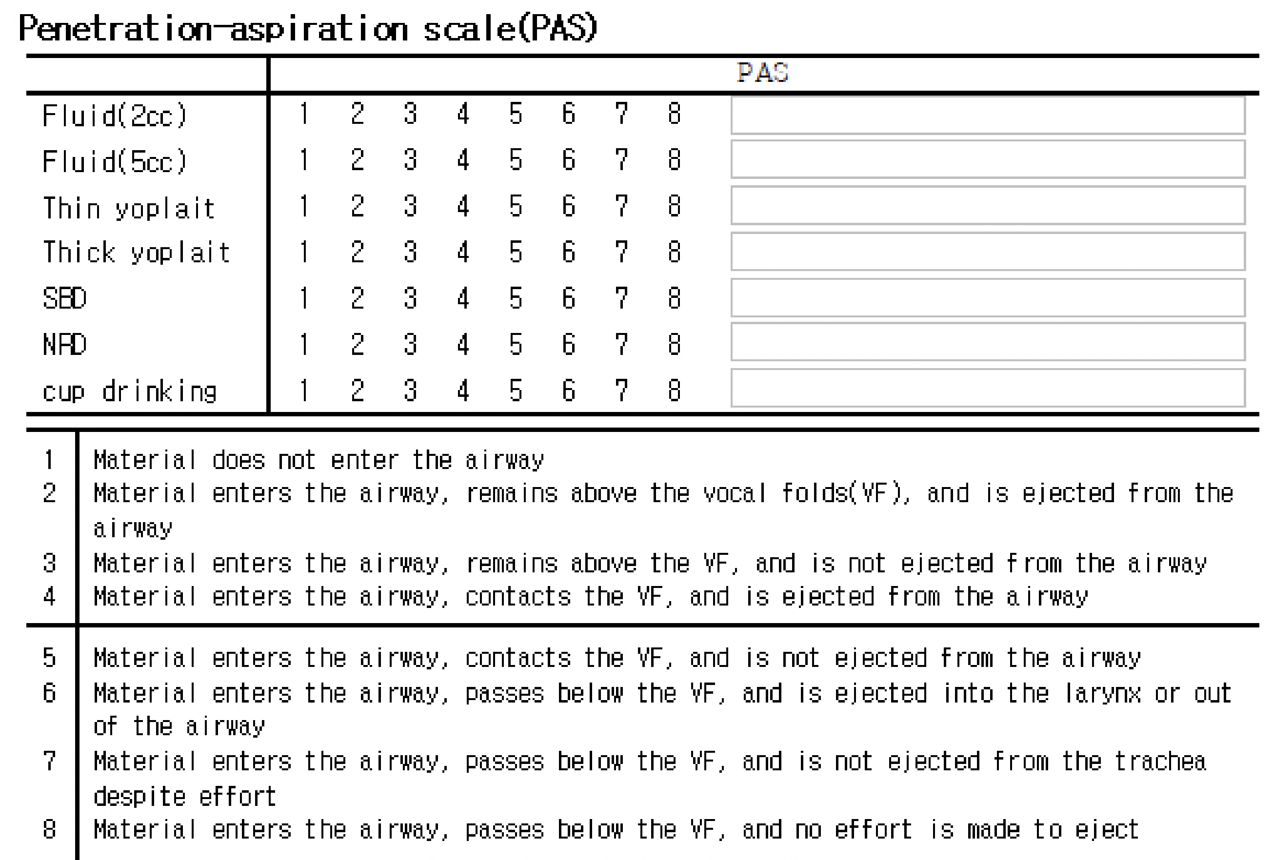 1) 비디오 투시 연하 검사 (VFSS)
