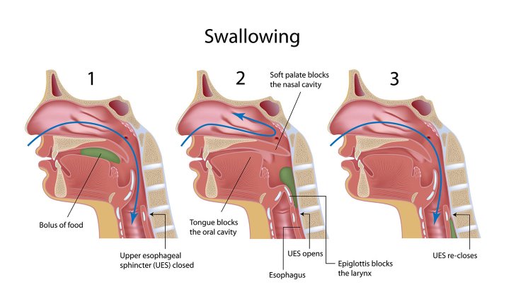 연하란 입 속에 있는 음식물을 잘게 침과 함께 씹어서 적당히 삼키기 좋게 만들고 알맞은 양으로 나눠서 삼키는 것을 말한다. 구체적인 연하의 과정은 크게 인지기, 구강 준비기, 구강기로 나뉜다. 인지기에서는 음식물을 인지하고 식욕을 느끼며 타액을 분비하고 소화관의 연동 운동을 자극한다. 구강 준비기는 음식물을 잘게 부수고 타액과 혼합하여 삼키기 쉬운 형태로 변형시킨다. 구강기에서는 혀를 이용하여 한 덩어리씩 나누어서 인두로 넘기며 후두 상승 및 후두개를 덮음으로 기도를 보호한다.