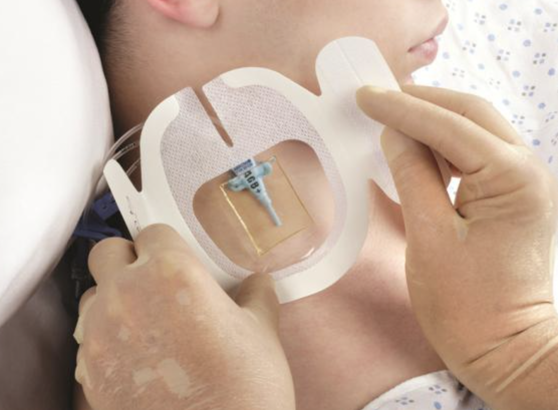 중심 정맥관 삽입 부위 또한 감염과 관련 될 수 있는데 성인에게서는 대퇴 정맥 부위는 가능한 한 사용하지 않는다. 중심 정맥관 삽입 부위는 멸균된 드레싱 제품을 사용하며 투명한 반투과성 필름을 이용하여 드레싱 하며 7일마다 교체한다. 거즈로 드레싱 할 경우에는 멸균 거즈를 사용하며 2일마다 교체한다. 드레싱은 헐거워지거나 드레싱이 오염되거나 젖을 경우 즉시 교체하며 관 삽입 부위에 연고를 바르는 것은 균의 집락화의 우려가 있어서 사용하지 않는다. (혈액 투석용 중심정맥관의 경우 항생제 연고를 삽입 부위에 도포한다. )