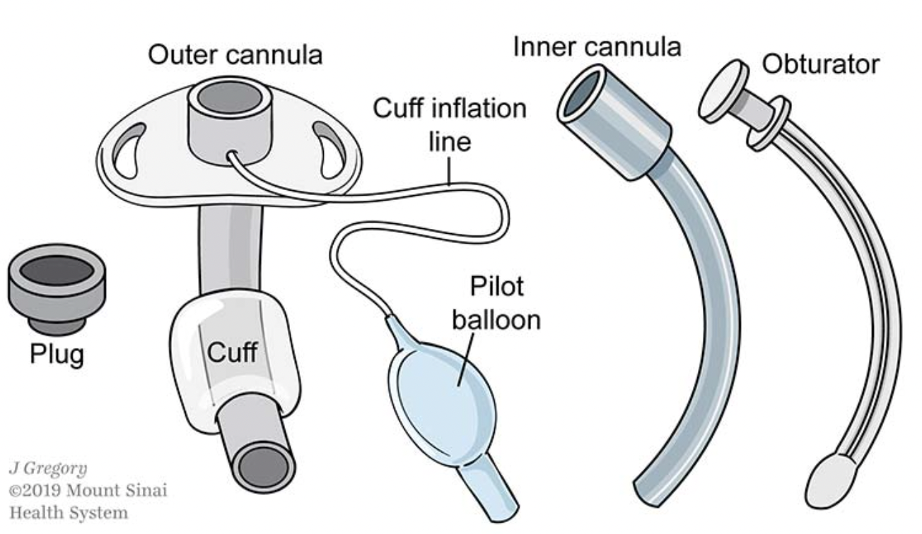 발포 커프가 달린 유형은 기관 내의 압력 변화에 따라 커프가 부풀어지거나 공기가 빠지며 특히 커프는 상기도의 분비물이 하부 기도록 흡인되는 것을 막는 역할을 한다. 또한 인공호흡기 등의 기계환기 장치 사용 시 공기가 새는 것을 방지하는 역할을 한다. 전색자(obturator)는 기관절개관 삽입 시 기관 손상을 줄이기 위해 외관에 끼워 삽입하는 용도로 사용되며 삽입 즉시 빼서 내관으로 바꿔 끼운다. 내관은 주기적으로 빼서 세척하며 분비물이 많지 않은 환자일 경우 내관이 없는 절개관을 사용한다.